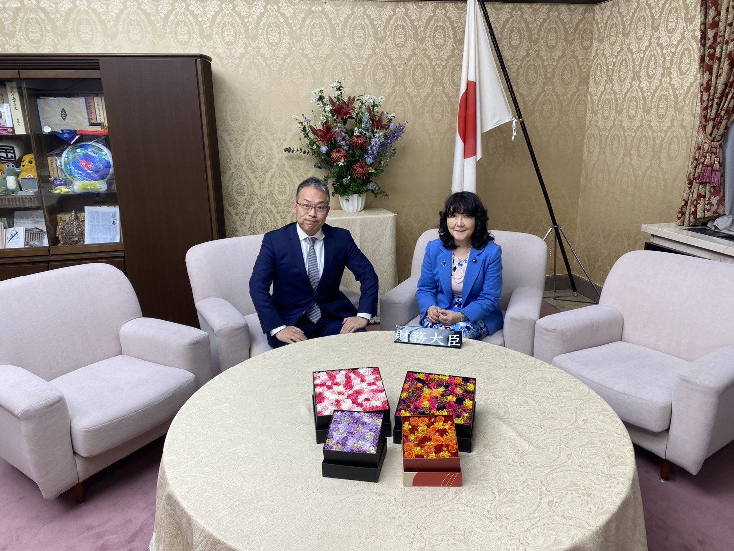 このたび、令和8年4月1日、新谷理事長が、当協会顧問であり財務大臣を務めておられる片山さつき参議院議員の大臣室に表敬訪問を行いましたので、ご報告申し上げます。