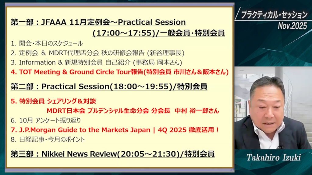- 「J.P.Morgan Guide to the Markets Japan | 4Q 2025 徹底活用」(伊月貴博理事)