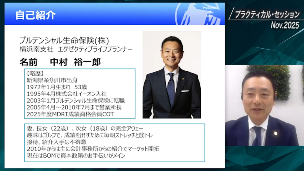 - 「特別会員 シェアリング&対談」(MDRT日本会 プルデンシャル生命分会 分会長 中村 裕一郎様)