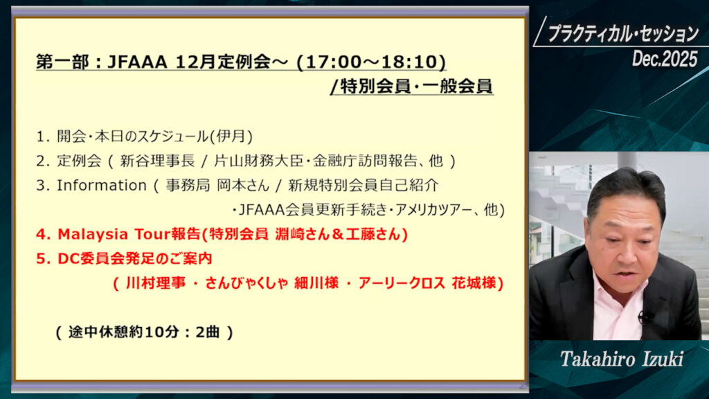 2025年12月11日、当協会は第12回の定例会・特別研修をオンラインで開催いたしました。