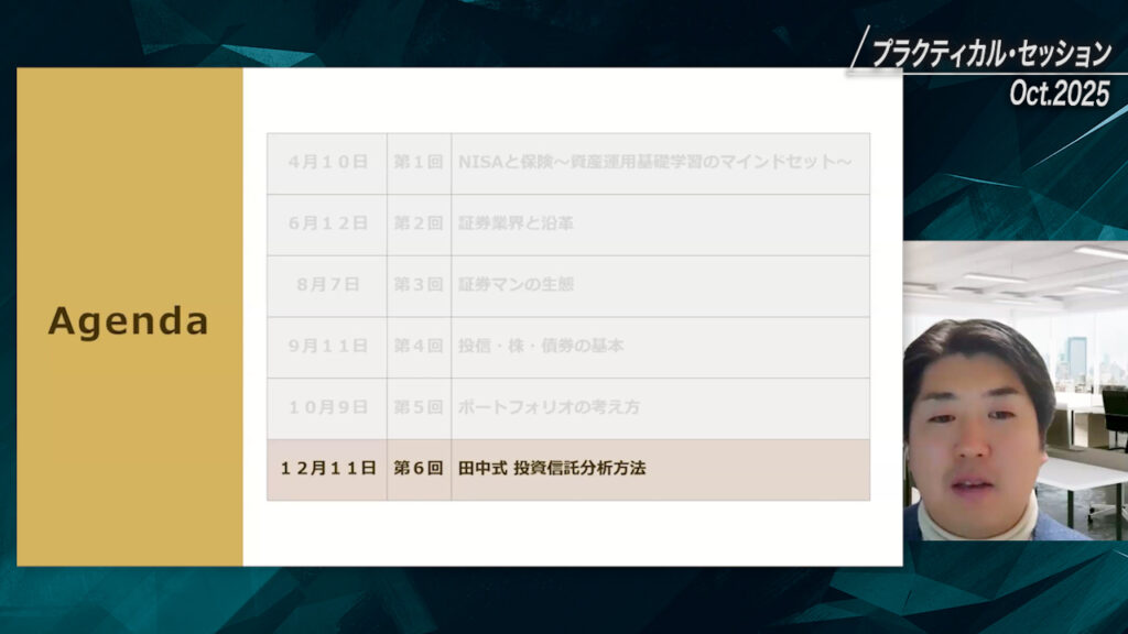 - 第6回 IFA養成講座「田中式投資信託分析手法」(SCHOLA認定講師 田中様)