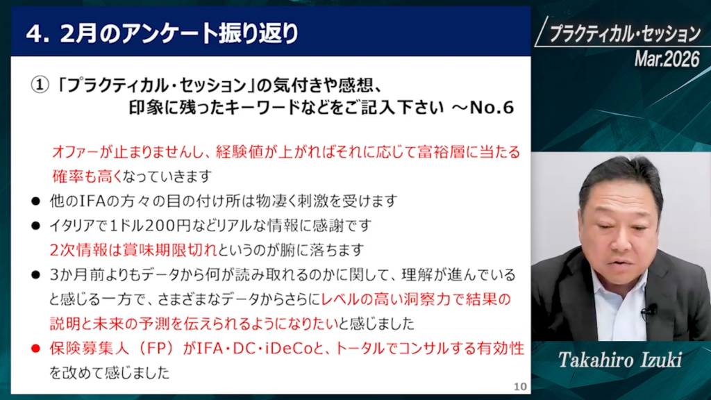 • 伊月理事より、2月のアンケートの振り返りがありました。