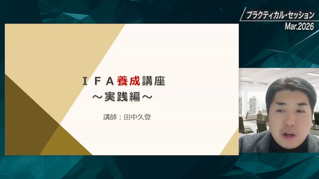 ・特別研修「IFA養成講座 実践編」第1回(講師:株式会社バリューアドバイザーズ 田中久登様)